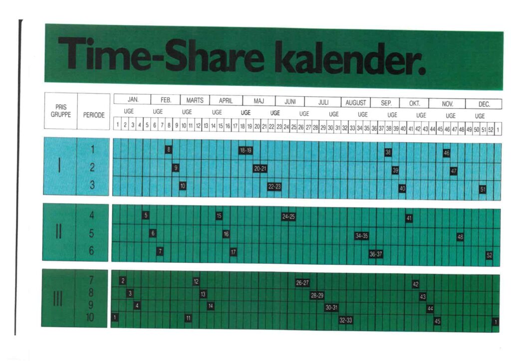Periode nr. | Uge nr. | Lejl. nr. | Sovevær. /Soveplad. | Pris kr. | RCI Point værdi |